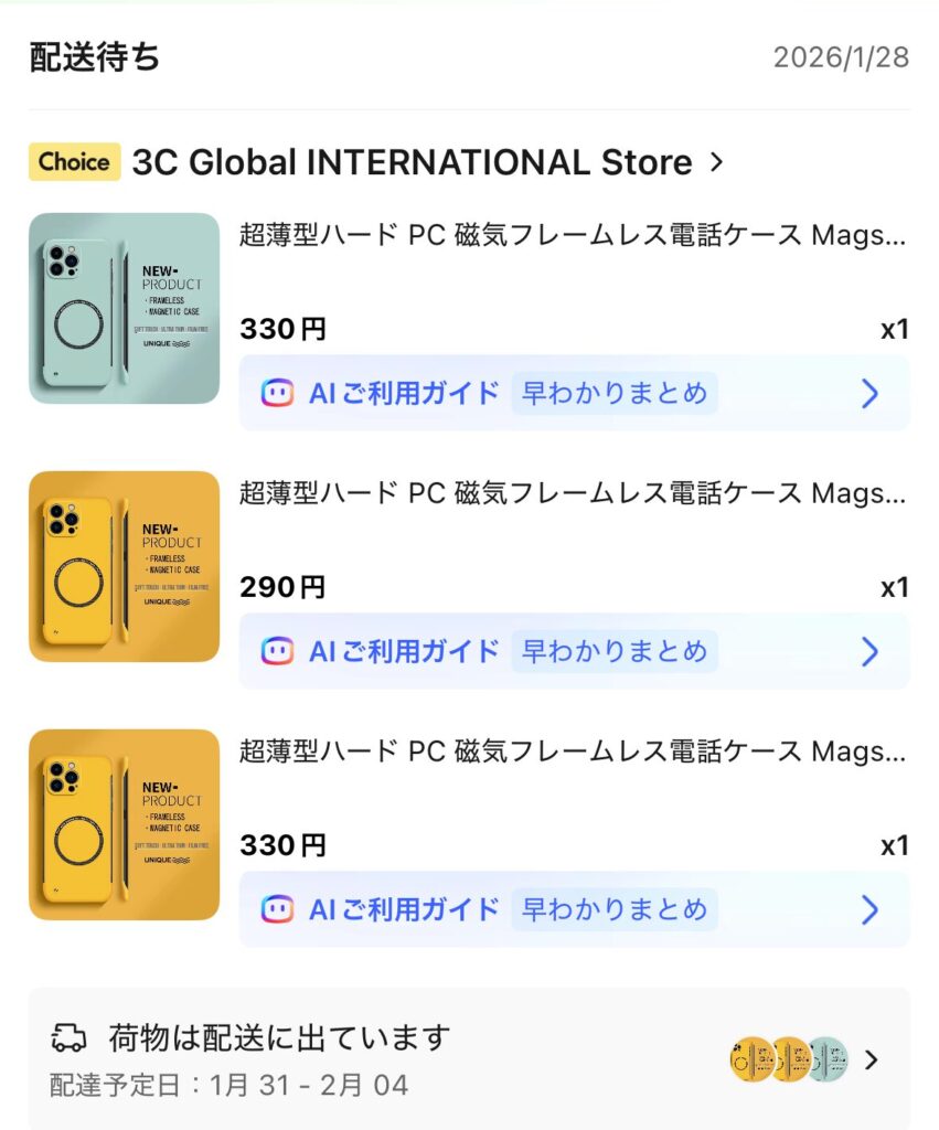 アリエクスプレスのマイページに出現するAIご利用ガイドは無くても良さそうな話