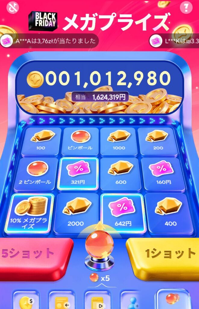 それともう一つ、11.11セールでは全くもって当たらなかったAliexpressクーポンが入手できるメガプライズもスマホアプリにてプレイすることができます。