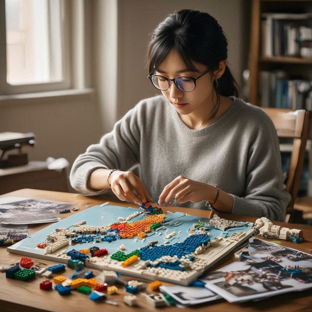 ブロックのおもちゃというと、上の画像のようにバラバラになったブロックを車や飛行機などの乗り物系や様々な動植物、建物などを組み立てるのが一般的であり、こういったものを組み上げるからこそ、想像力と空間認識力が養われるのだと思います。