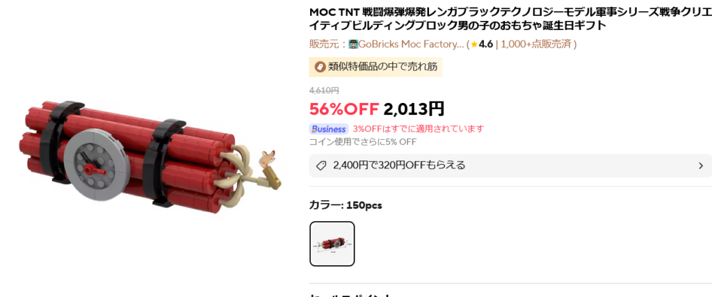 しかしアリエクスプレスには、組み上げるとTNT爆弾になるブロックのおもちゃがごくごく普通に売られております。