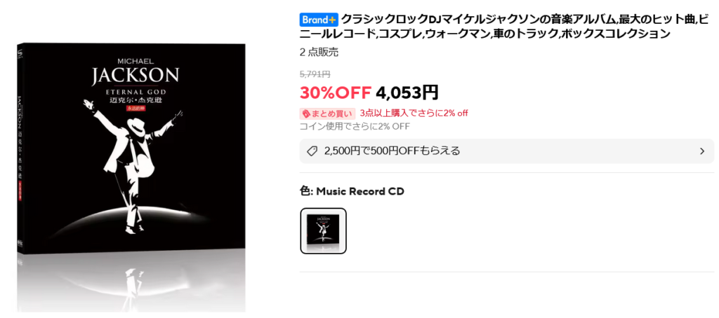 例えば、キングオブポップの音楽CDがアリエクスプレスでは販売されておりますが、この商品にも『Brand+』と正規品とちゃんと表記されております。