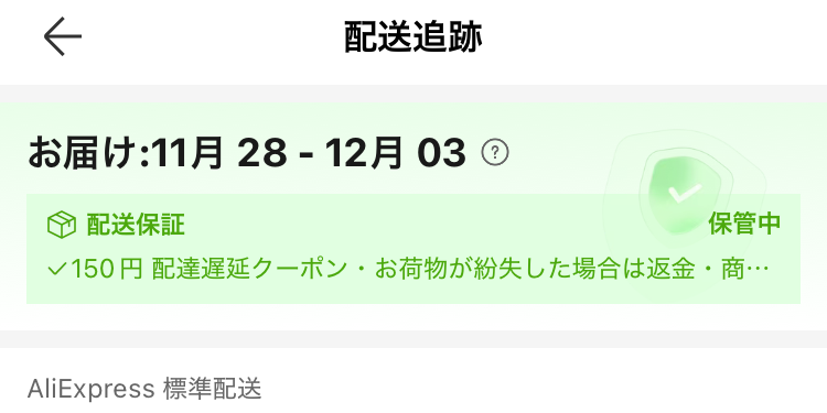 現在のアリエクスプレスは、商品が発送さえされてしまえば、概ね3日から長くても7日間で日本のユーザー宅へ届くほどのスピードがあるにも関わらず、11.11セール後とはいえ配送予定日が1か月後となっているのは少し不可解です。