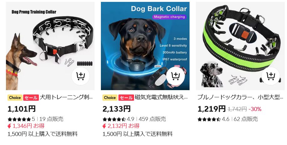 私はペットを飼っているわけではないので、もしかすると、異様に思えたアリエクスプレスのしつけ用品が、実は日本でもごくごく当たり前の商品であるのかもしれませんが、こういった痛みを伴う商品は今の世の中ではあまり一般的でないような気がします。