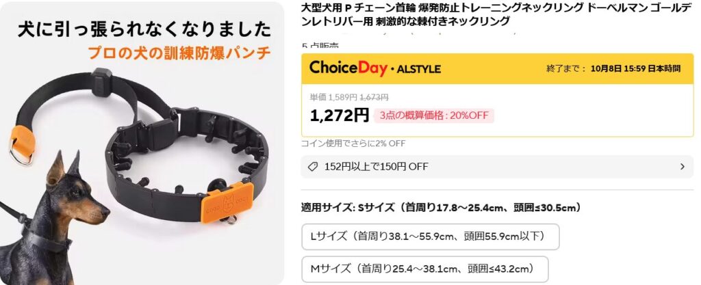 そんなことを踏まえつつ、アリエクスプレスには犬、特に大型犬のしつけ用品には痛みを伴うものが多数存在していたりします。