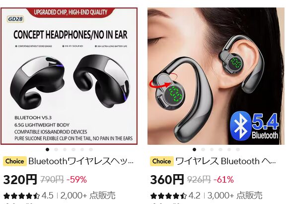 どこまでの価格帯を安物と設定するのかが非常に難しいところではありますが、アリエクスプレスには上の画像のように500円にも満たない骨伝導イヤホンがやたらと販売されておりますが、この価格帯は間違いないと言えます。