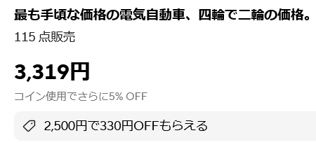 実際、この電気自動車の本来の価格は140万円以上のようでして、言うのもばかばかしいですが、3千円で買える商品ではけっしてございません。