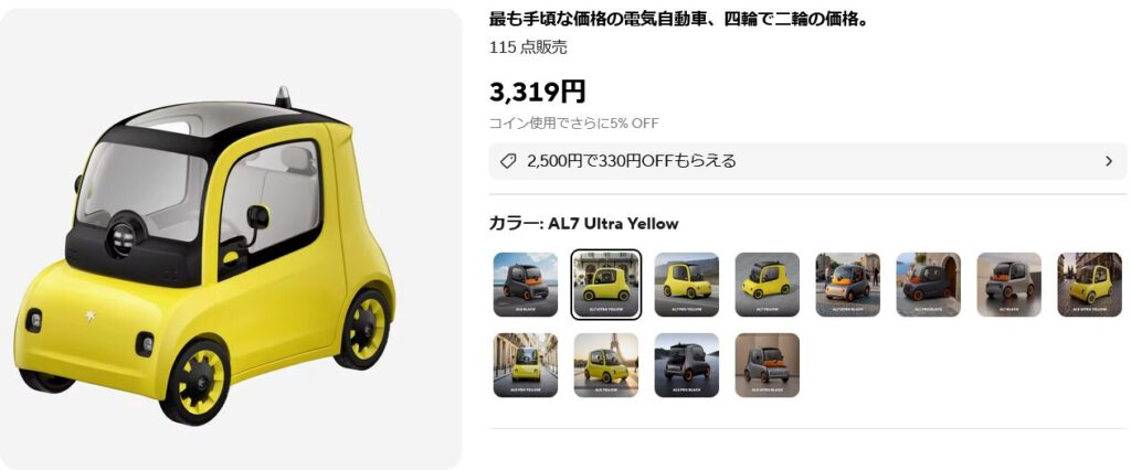 しかし、この3千円ちょっとの電気自動車にはもう既に100件以上の注文が入っていて、おそらく誰もが3千円で買えないことを知りつつ、注文しているのだと推測されます。