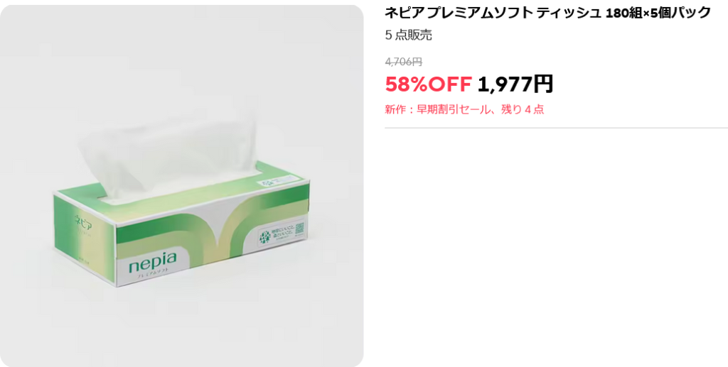 最後は5組のティッシュなのですが、送料無料とはいえ、2千円弱のお値段で販売されております。