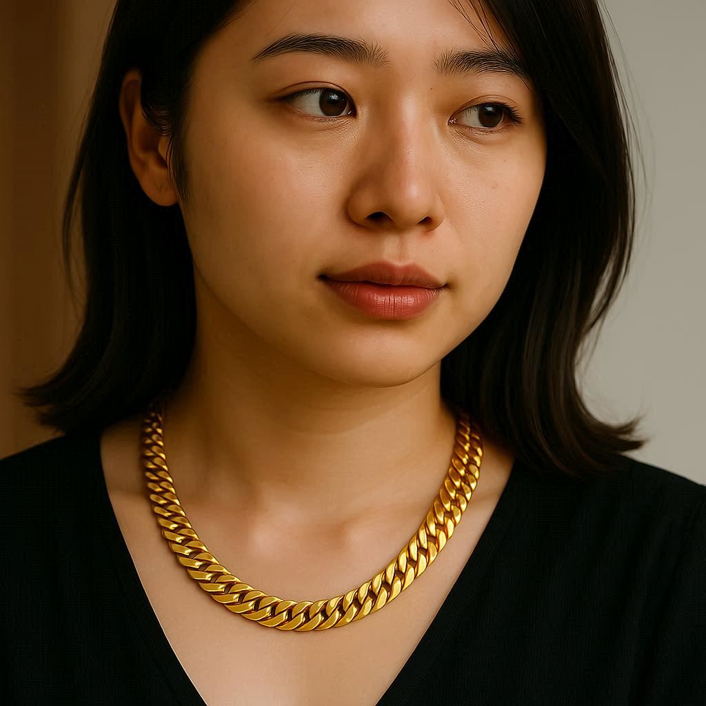 本物で24Kということは、本物の24金のゴールドが使用されていると解釈できますが、たった1gで2.2万円もする金価格の現状にて、ネックレスが2.7万円ならばタダみたいなものです。