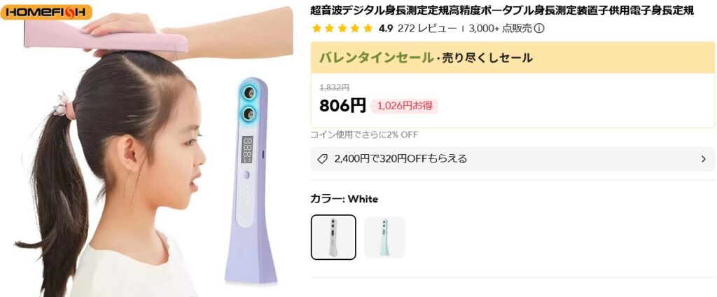 この身長測定器を頭の上にのせ、地面までの距離を超音波で計測することで、正しい身長が簡単に測れるというこの商品のお値段はたった800円ほどだったので購入してみました。