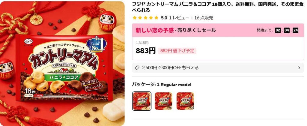 まずは、日本人ならば馴染みのある上の画像のお菓子ですが、送料無料ながらも1つ883円で販売されております。