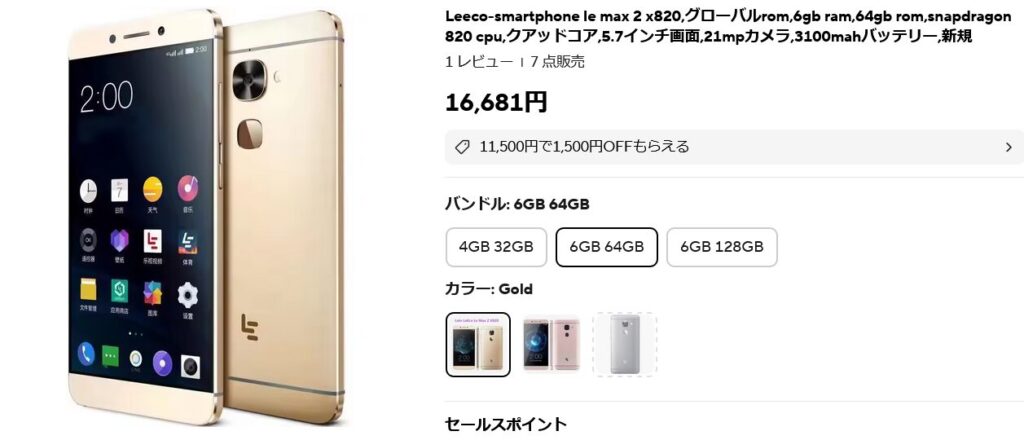 そんなことを思い出しつつ、さすがに今のアリエクスプレスで10年前のLeEco Le Max 2は売っていないだろうと思いきや、今でも新品が普通に売られておりました。