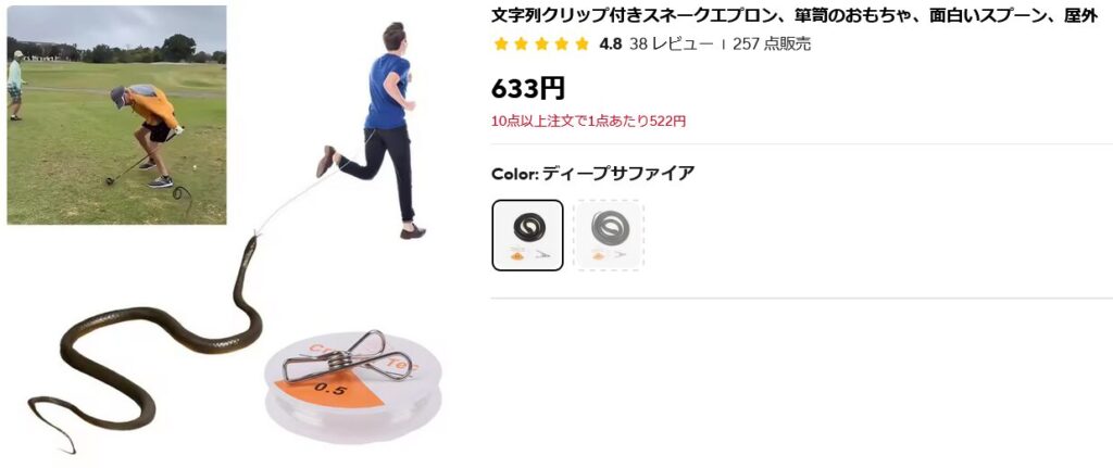 あくまでも子供だから許されるレベルのいたずらであり、大の大人がやることではないと思われますが、アリエクスプレスにはヘビがどこまでもついて来るシリーズのおもちゃが溢れるほど売られており、しかも、昭和の時代のゴムヘビは明らかにおもちゃとわかったものの、現代のものは、やたらとリアルなので事故が起きかねないように思われます。
