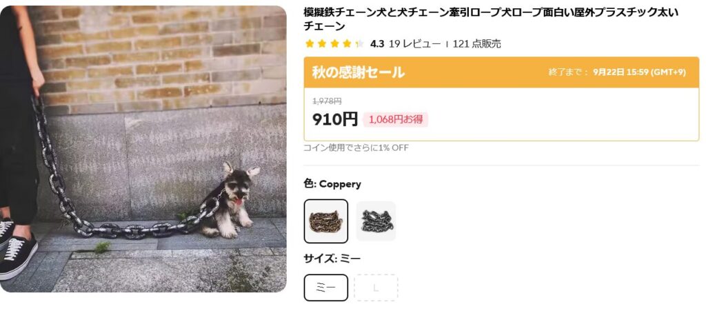 ですので、犬を飼育していない私からすると売れないであろうと予測するも、これが100件以上の注文が入っていて、アリエクスプレスのペット用品の売れ筋は謎に満ちております。