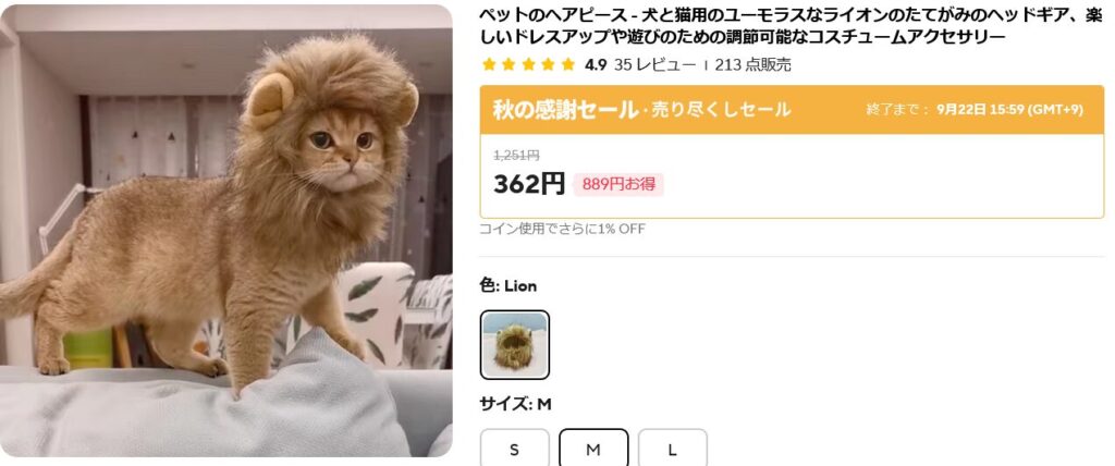 ペットがいない私であっても、例えば、上の画像のネコ用のたてがみといった商品が売れているのはちゃんと理解でき、人間でいうところのコスプレをするために購入し、それが多くのユーザーに受け入れられていることも理解できます。