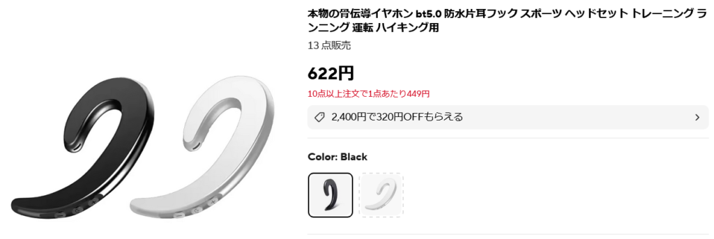 例えば、上の画像は『本物の骨伝導イヤホン』との商品名で販売されておりますが、もしも本物の骨伝導ならば600円で買えるような代物でなく、それなりのお値段となります。