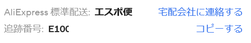 『Aliexpress標準配送』にヤマト運輸やエスポ便という表記が必ずあって、その横の『宅配会社へ連絡する』というリンクをタップすれば、その配送業者の電話番号が表示されるので、この番号で連絡することができます。