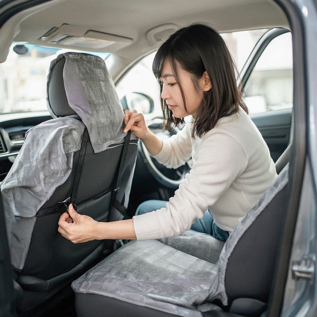 このシートカバーを運転席と助手席に装着している車ならば、なにか危害を加えようとしたり、いじくったり、触ったりする人間はぐっと減るような気がします。