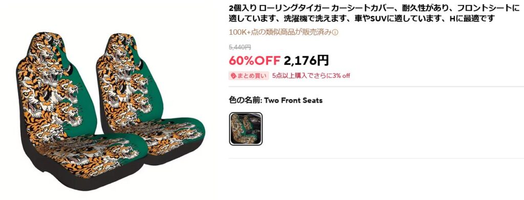 もう少しだけコミカルなものを望むのなら、動物系のシートカバーも販売されており、この虎のシートカバーが付いている車、ましてや軽自動車ならば、逆に不気味さがたっぷり溢れてくるので、手を出してくることはなくなる気がします。