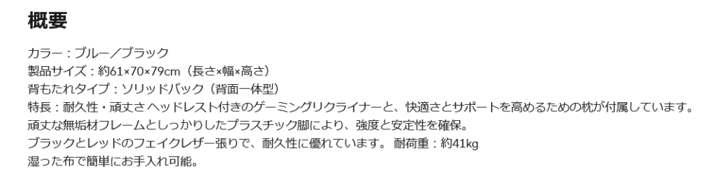 しかし、このソファーは誰もが想像するものとは大きくかけ離れており、それは商品の詳細ページに記載されているスペックを見ると分かります。