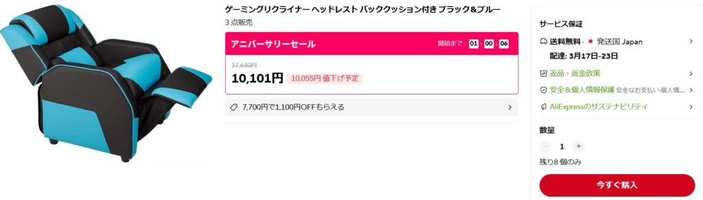 例えば、上の商品画像を見ると、誰もが一人掛けのリクライニングソファーであると認識をし、このお値段でしかも送料無料となれば、断然安いと感じられ、購入してみようと思われる方はかなりいらっしゃると思われます。