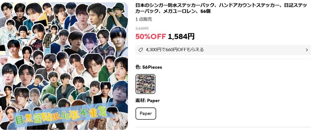 しかも、この方のステッカーの販売価格は、アリエクスプレスで販売されている肖像権侵害ステッカーの中ではかなり強気でして、他の5倍から7倍のお値段で売られております。
