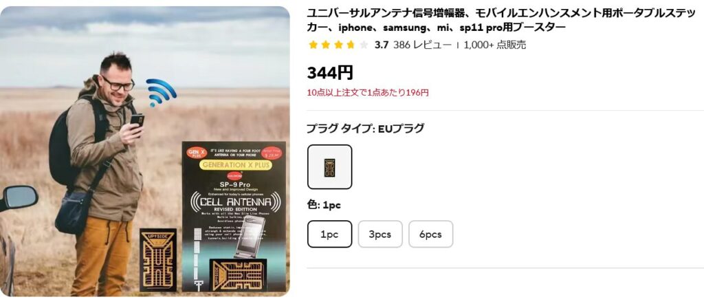 時が流れた現代においても、ガラケー創成期時代から存在するあのステッカーがアリエクスプレスには販売されており、まだまだ電波状況が良くなさそうな国の人々を中心に挙って購入されている図式がございます。