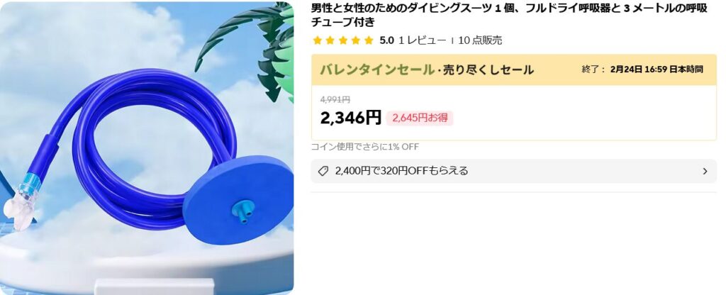 アリエクスプレスにはこういった、結果のみを優先にして製造された商品が割と多く、こんなものを使ってスキンダイビングをしたら、潜水する深さによっては溺死する危険性をはらんでいるような気がするのですが、このレベルの商品をわざわざ真冬におすすめするようになりました。