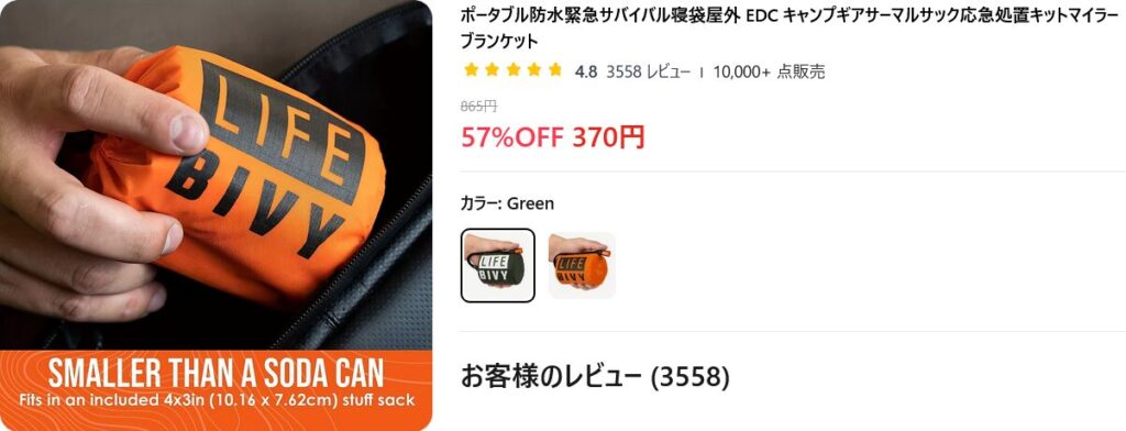 また、車の中に置いておけば、大雪で立ち往生などした際にも命拾いできそうにも思えますので、もしもよりどりで1品足りない時には300円ちょっとで買えるサバイバルシートを追加してみては?というお話でした。