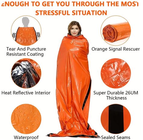 このサバイバルシートは寝袋のように使え、この中に入ると最大20℃ほど温度が上昇するため、寒い時期になんらかの災害に遭って寒さに凍えることがあった際には、ものすごく重宝すると思い購入しました。