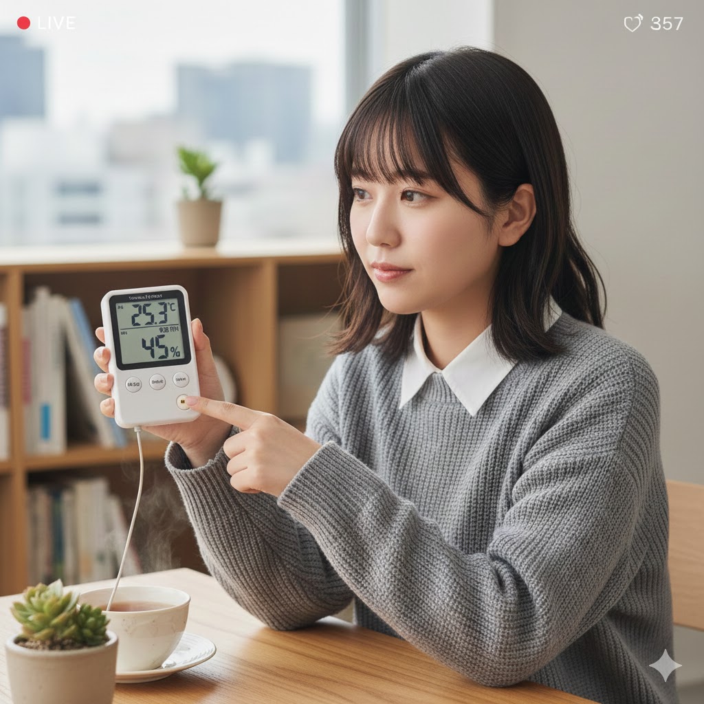 届いて早速使用してみると、我が家にある日本製の温湿度計と全く同じ数値を計測しますので、温湿度計としては合格です。