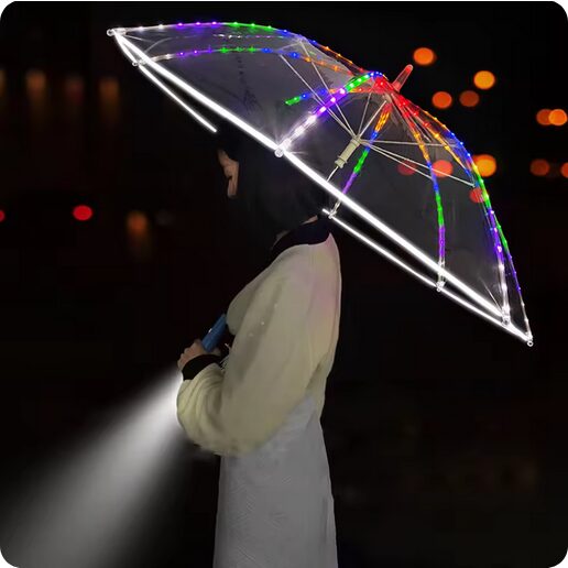 このLEDビニール傘が良いのか悪いのかの判断は付きませんが、少なくとも日本では見かけない暗い夜道に通行人が存在することだけはアピールできるビニール傘のお話でした。