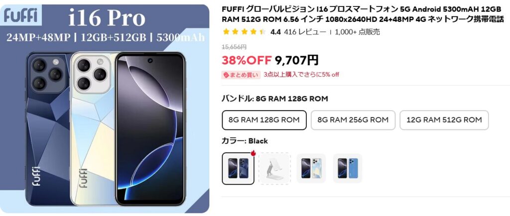 なるほど、FUFFIのスマホは良いものなのかも?と思ったのもつかの間、商品の詳細ページを見てみると、どこからどう見てもパチモノスマホであることが一目で分かりました。